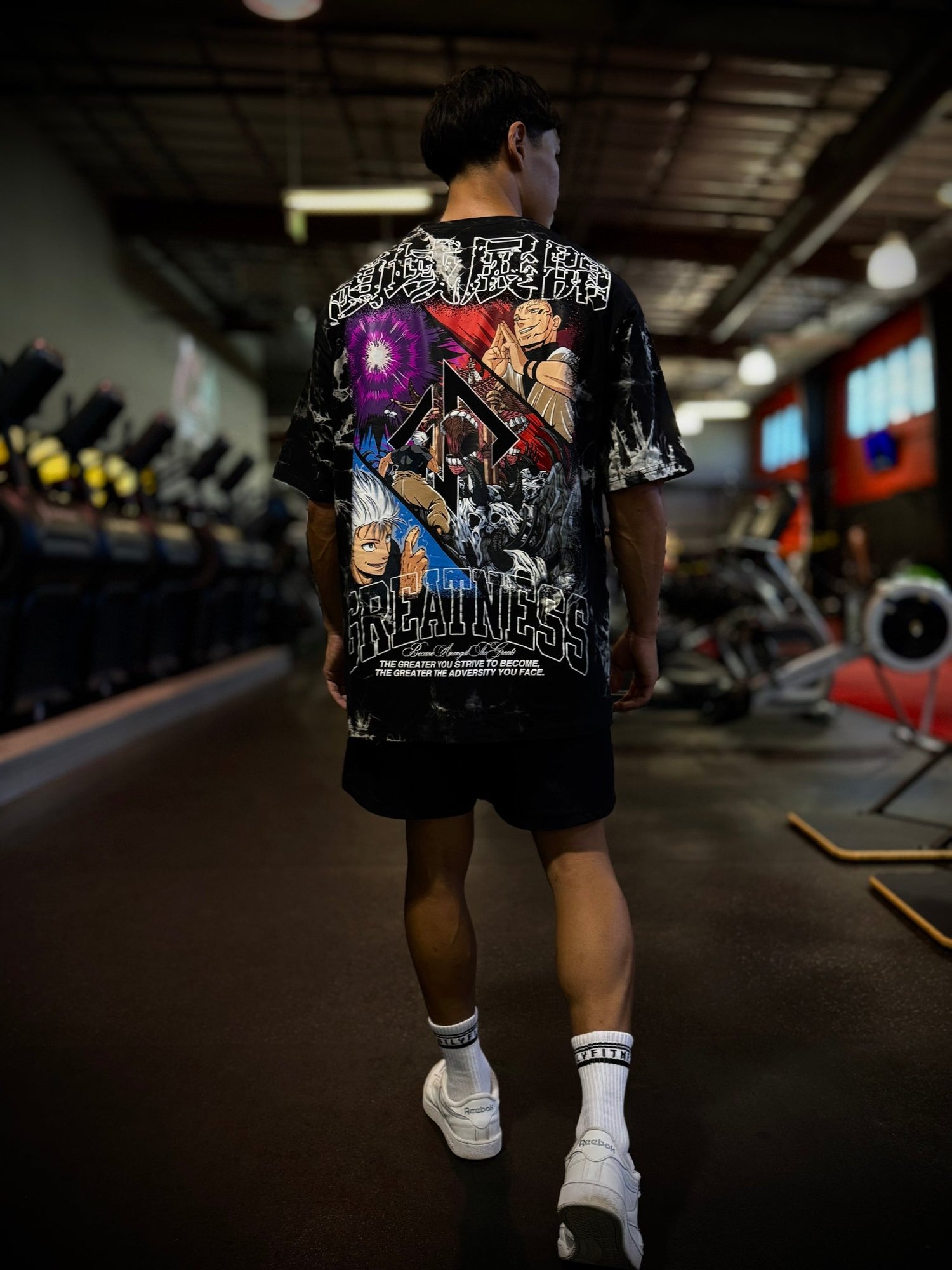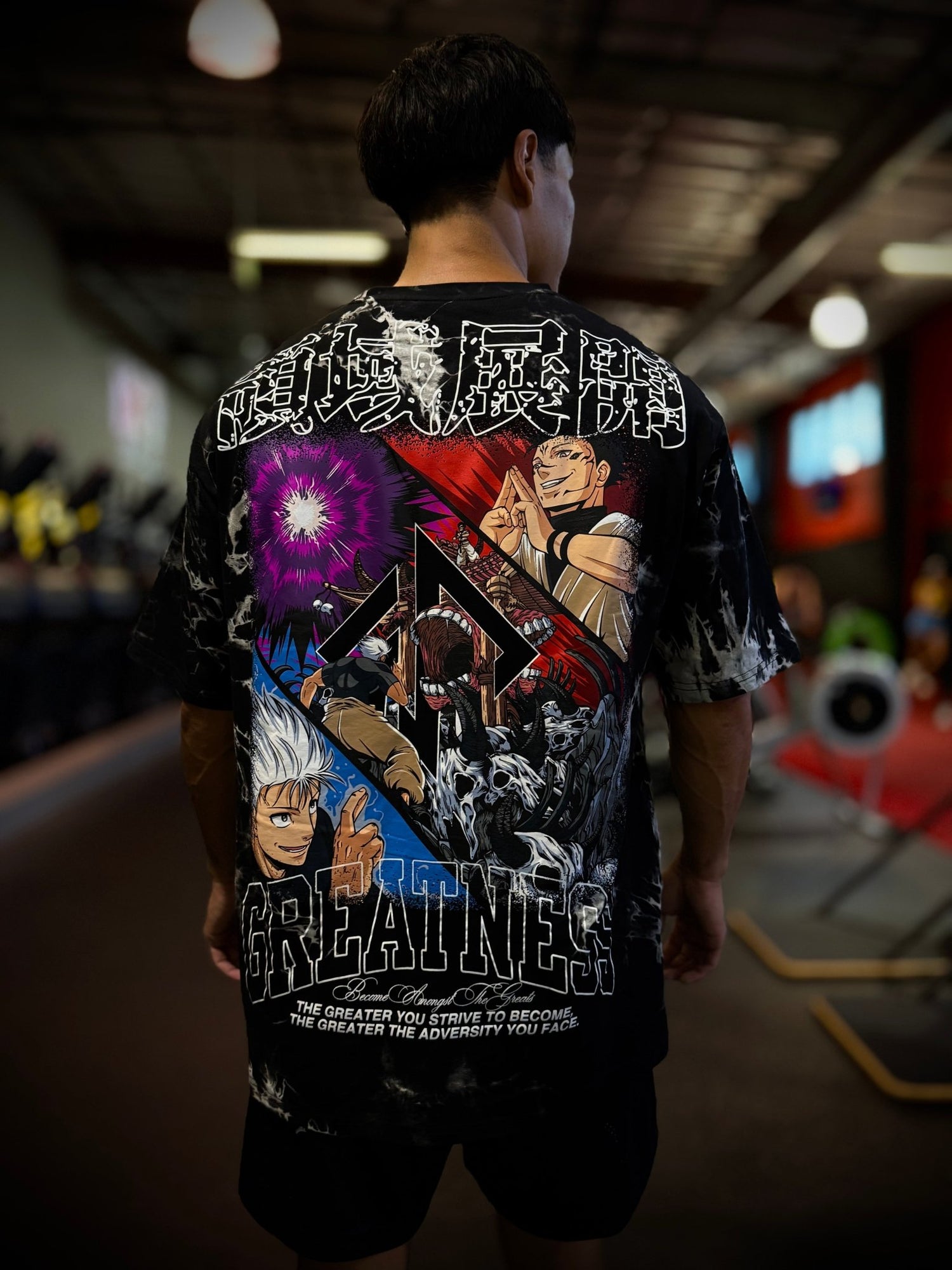This FSD X JJK "Domain Expansion" shirt boasts an oversized fit for ultimate comfort and practicality. With a high-quality blend of cotton and elastane, it offers the perfect balance of breathability and flexibility for all-day wear. The dark tie dye design adds a stylish touch to reflect the JJK theme's "Domain Expansion."