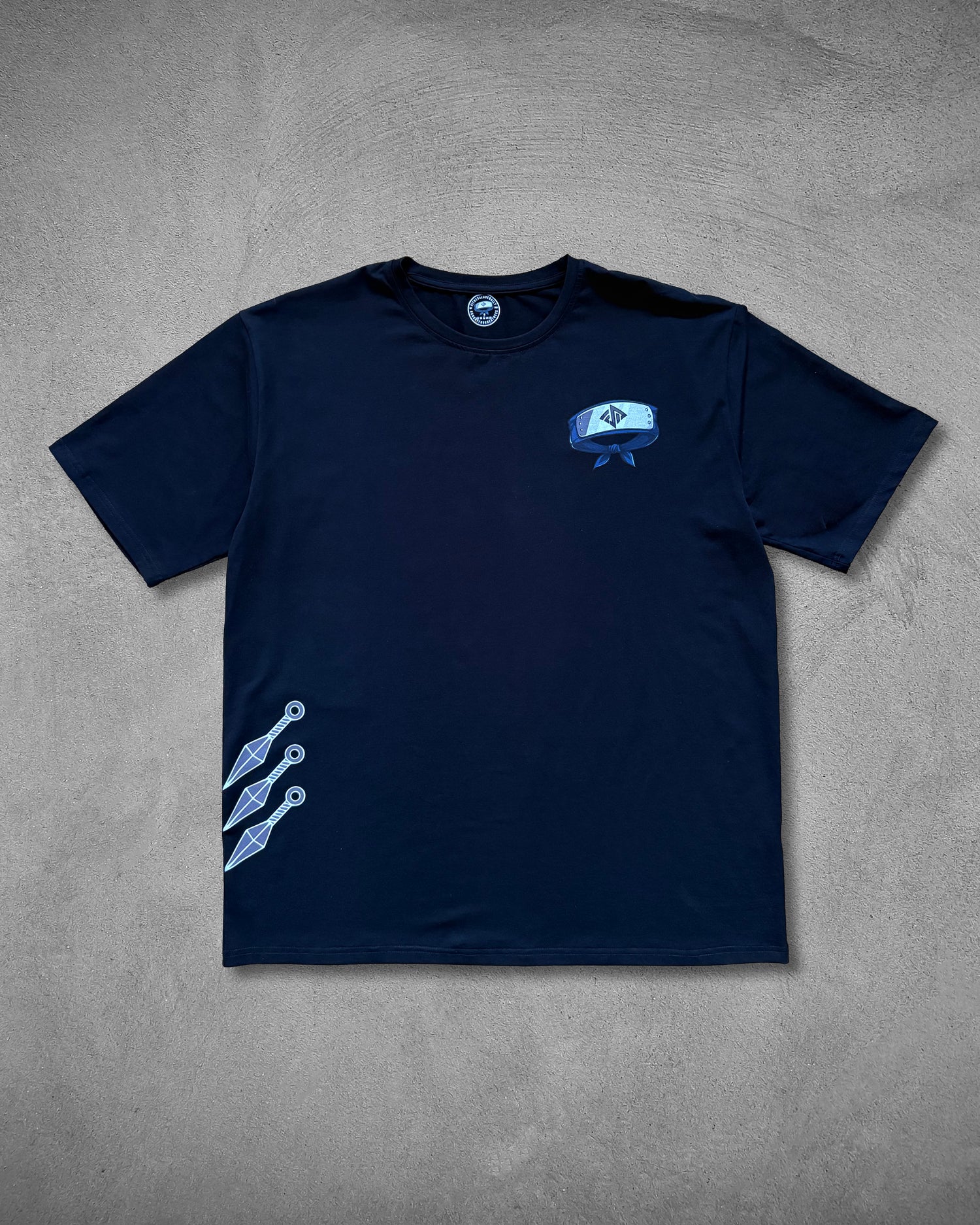 The front of the shirt features the village headband incorporating the FSD logo. The right side displays three kunai, while the left sleeve is adorned with the embroidered Uzumaki clan emblem. Designed with an oversized fit, this shirt pays tribute to the Hidden Village’s legacy of greatness.